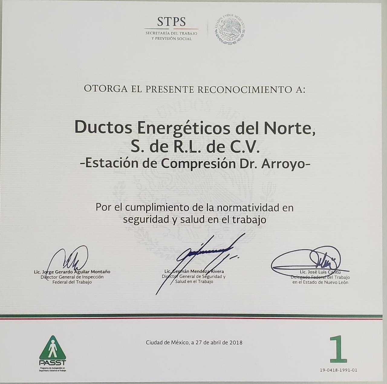 Voluntariamente, nos adscribimos a programas de certificación que validen, con estándares nacionales e internacionales, nuestro desempeño en Seguridad y Salud. Destacan, el Programa de Autogestión de Seguridad y Salud en el Trabajo (PASST) de la Secretaría de Trabajo y Previsión Social (STPS), y el estándar ISO 45001 (antes OHSAS 18000).
